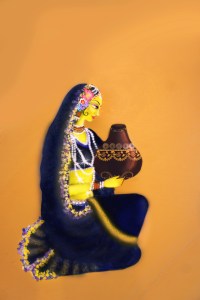 Next, the particulars of Śrī Vilāsa Mañjarī are given: In the southeast part of Śrī Viśākhā’s kuñja lies the very beautiful Vilāsānandada Kuñja, where Śrī Vilāsa Mañjarī always remains as one of Śrī Rūpa Mañjarī’s sakhīs. She has a bodily color like that of a golden ketakī flower, and her dress is the color of a bumblebee. Her nature is vāma-mṛdvī, and she is 4 days younger than Śrī Rasa Mañjarī, making her age 12 years, 11 months and 26 days. In gaura-līlā she is known as Śrī Jīva Gosvāmī.