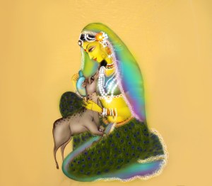 Next, a description of Śrī Rūpa Mañjarī is given: In the northern part of Śrī Lalitā Sakhī’s kuñja lies Rūpollāsa Kuñja, where the very beautiful and graceful Śrī Rūpa Mañjarī resides. She is the foremost among the gopīs known as priya-narma-sakhīs. Her complexion is the color of gorocanā, and she delights in wearing a dress the color of peacock feathers. Her age is 13 years 6 months and her nature is vāma-madhyā. The paṇḍitas call her Raṅgaṇa-Mālikā. In age, she is one day younger than Lavaṅga Mañjarī. In gaura-līlā she appears as Śrīla Rūpa Gosvāmī.